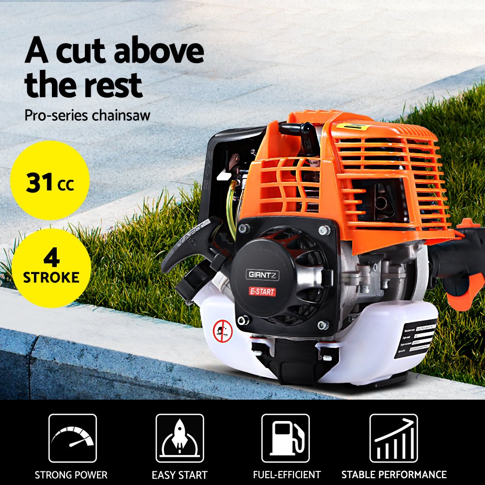 When cutting needs to be done at height, the GIANTZ 4-stroke 31cc Long Reach Chainsaw is definitely cut out for the task.