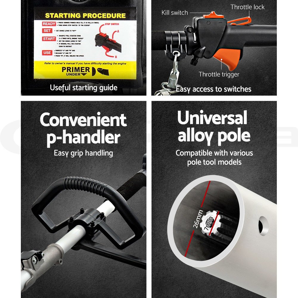 Giantz 31cc Pole 4 Stroke Chainsaw Petrol Tree Pruner Long Reach Saw 12 Inch Bar