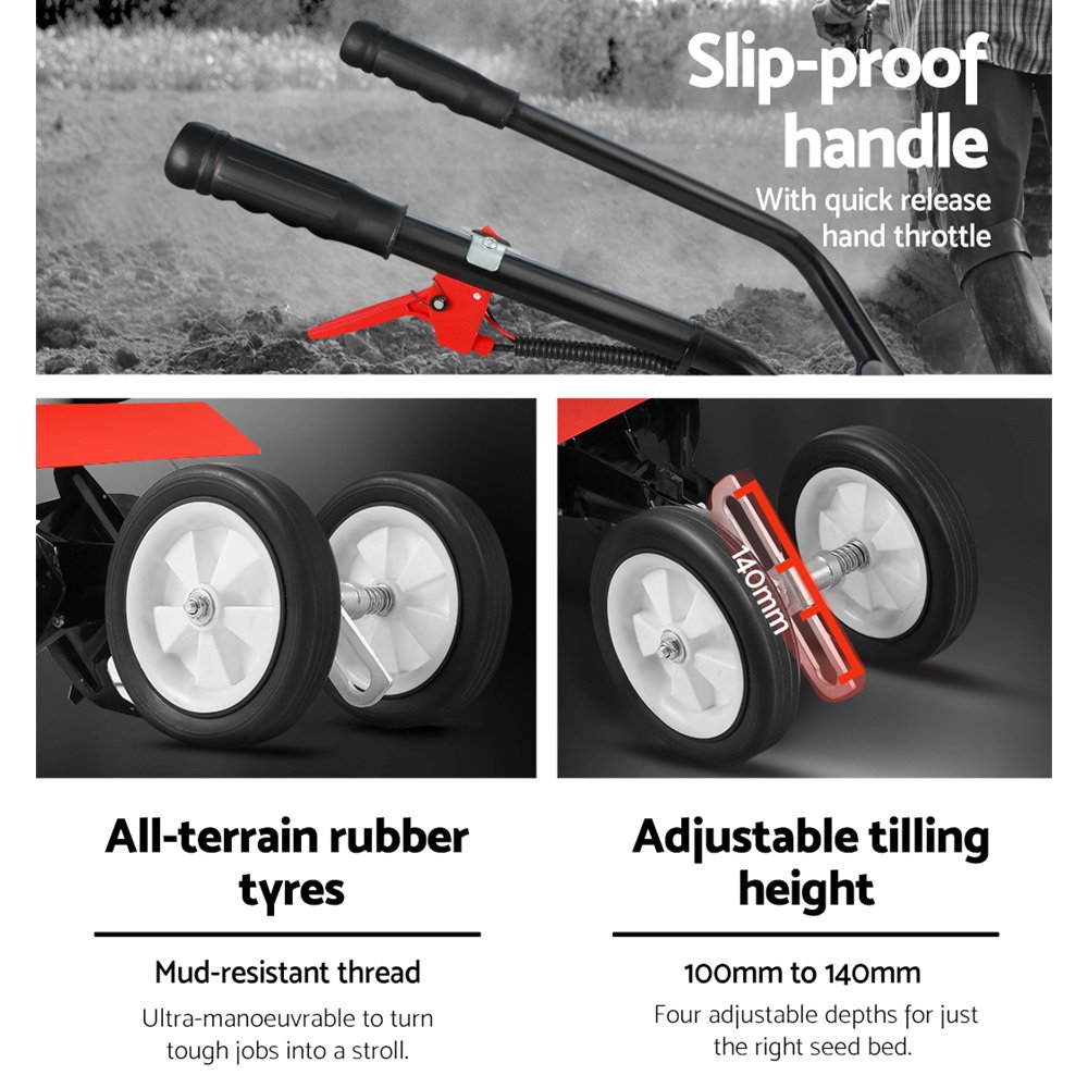 Giantz 63CC Tiller Garden Cultivator Rototiller 4 Blades Soil Plower Rotary Hoe
