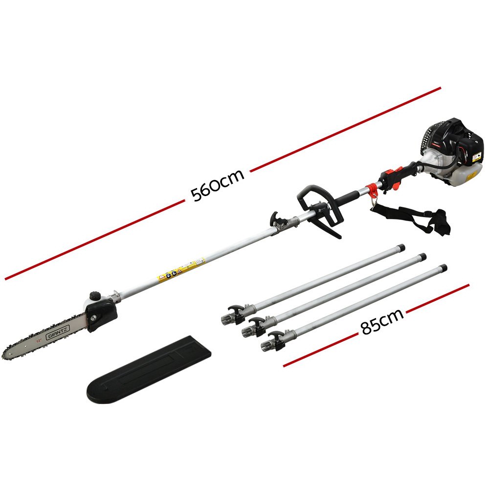 Ladders and chainsaws don’t mix. Deal with those pesky overhanging branches without putting yourself at risk with the Giantz Pole Chainsaw, the latest in our 65cc commercial grade pro-series. The chainsaw features a responsive direct air injection carburettor, making it a high-power addition to your tools. An ‘easy start’ pulling system makes it easy to start your job, while the built-in anti-vibration system keeps fatigue at bay – perfect for those long jobs. With three extension poles made from strong anodised alloy, you can get to all those hard-to-reach places, making all your pruning and sculpting jobs easy. The adjustable automatic oil feeding system allows you to set and forget your chain lubrication for a smooth cut in any condition. It features a balanced design for ease of use and maneuverability, made even easier by the included shoulder strap and easy access to all control switches. Best of all, each purchase comes with a bonus tool kit and safety set, so you have everything you need to get started. Stop worrying about problematic hanging branches and get a Giantz Pole Chainsaw today.