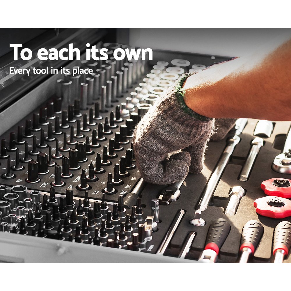 This robust, multi-drawer Giantz Tool Chest is an essential for any workshop. Crafted from durable steel, it features smooth ball-bearing slides for easy access and a secure lock system for safety. Its spacious design includes varying drawer sizes to accommodate tools of all shapes, complete with non-slip liners. Sleek and functional, it’s perfect for organizing and protecting your valuable tools.