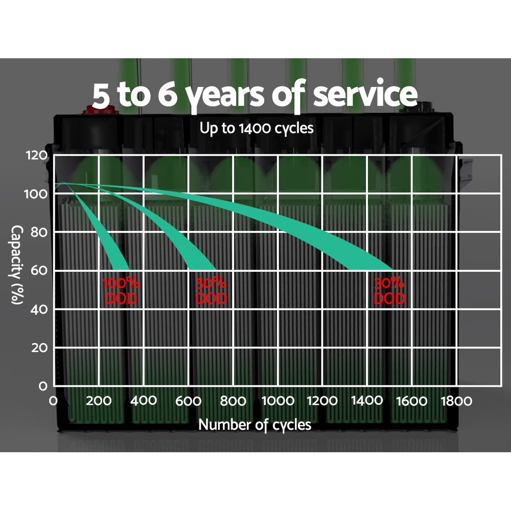 Our portable GIANTZ Deep Cycle Battery provides off-the-grid power supply for 4WD vehicles, caravans, campers, trailers, motorhomes, saltwater/marine applications, and all 12V appliances including portable fridges and washers. The 140Ah 12V battery features an incredible cycle life of up to 1400 cycles, making it one of the most enduring in its class. What you get is a longer, consistent and more drawn out charge all the time. And with its advanced AGM technology, the battery enables better electrolyte absorption, cyclic stability and frequent charging without affecting performance. The bolt down terminals also allows for more reliable experience, and not least, the high oxygen-recombination efficiency results in superior deep discharge recovery. The maintenance-free deep cycle battery is completely sealed, spill-proof and does not leak gas for added safety and durable use.