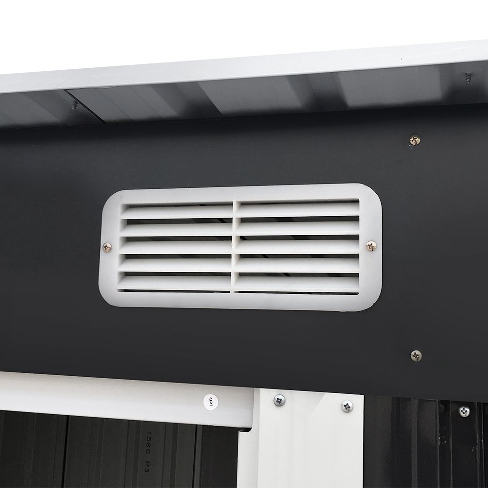 Inside, the Metal Garden Shed leaves plenty of room for tools and equipment while the two air vents ensure adequate ventilation at all times to prevent any stuffiness. The double sliding doors also make entrance easy and obstructive for bringing equipment in and out of the Shed. Not least, the sloped roof ensures all rain and water is easily drained off with no chance of pooling.