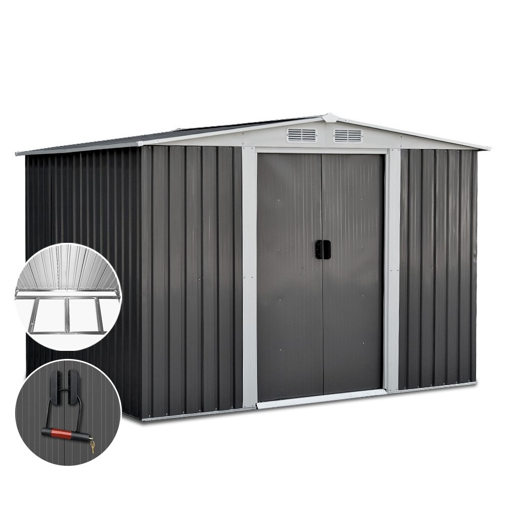 Giantz Garden Shed 2.58×2.07M w/Metal Base Sheds Outdoor Storage Double Door Tool