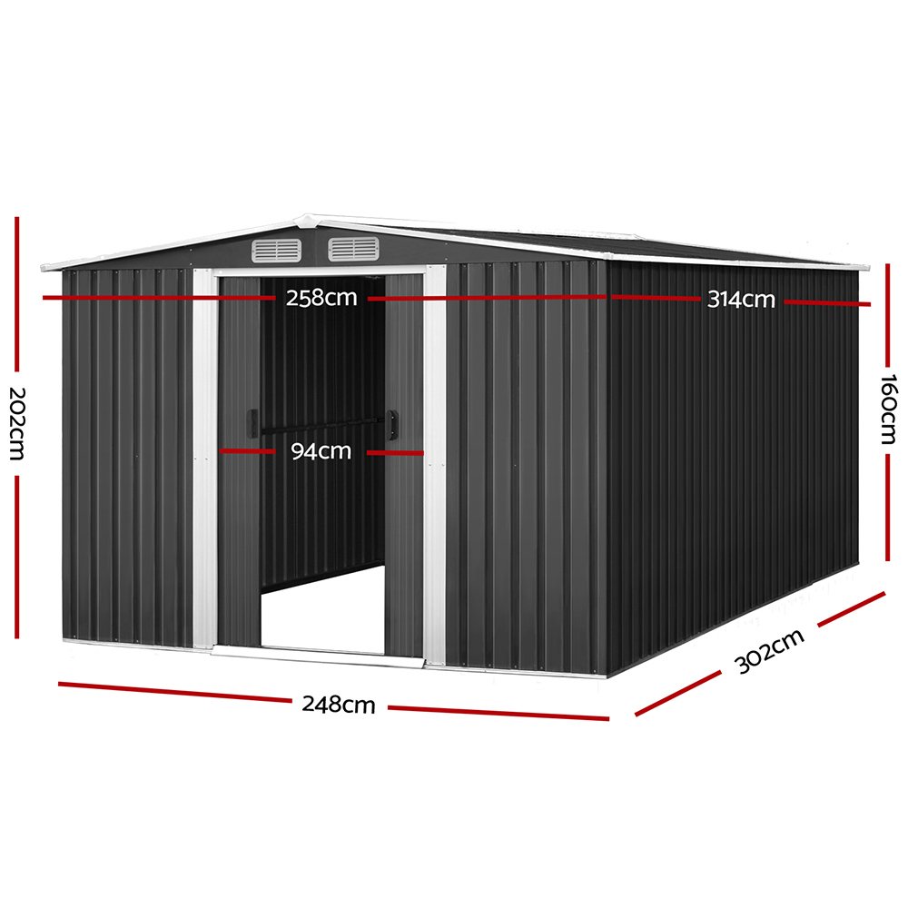 Giantz Garden Shed 2.58×3.14M w/Metal Base Sheds Outdoor Storage Workshop Shelter Sliding Door