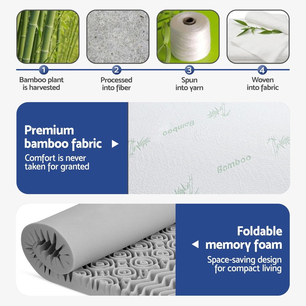Experience elevated comfort with Giselle Bedding’s 8cm graphite-infused memory foam mattress topper. Its 7-zone contoured surface with open cell structure improves airflow, while the memory foam offers lasting support and over 1000 contact points. Finished with a removable bamboo fabric cover and anti-skid base