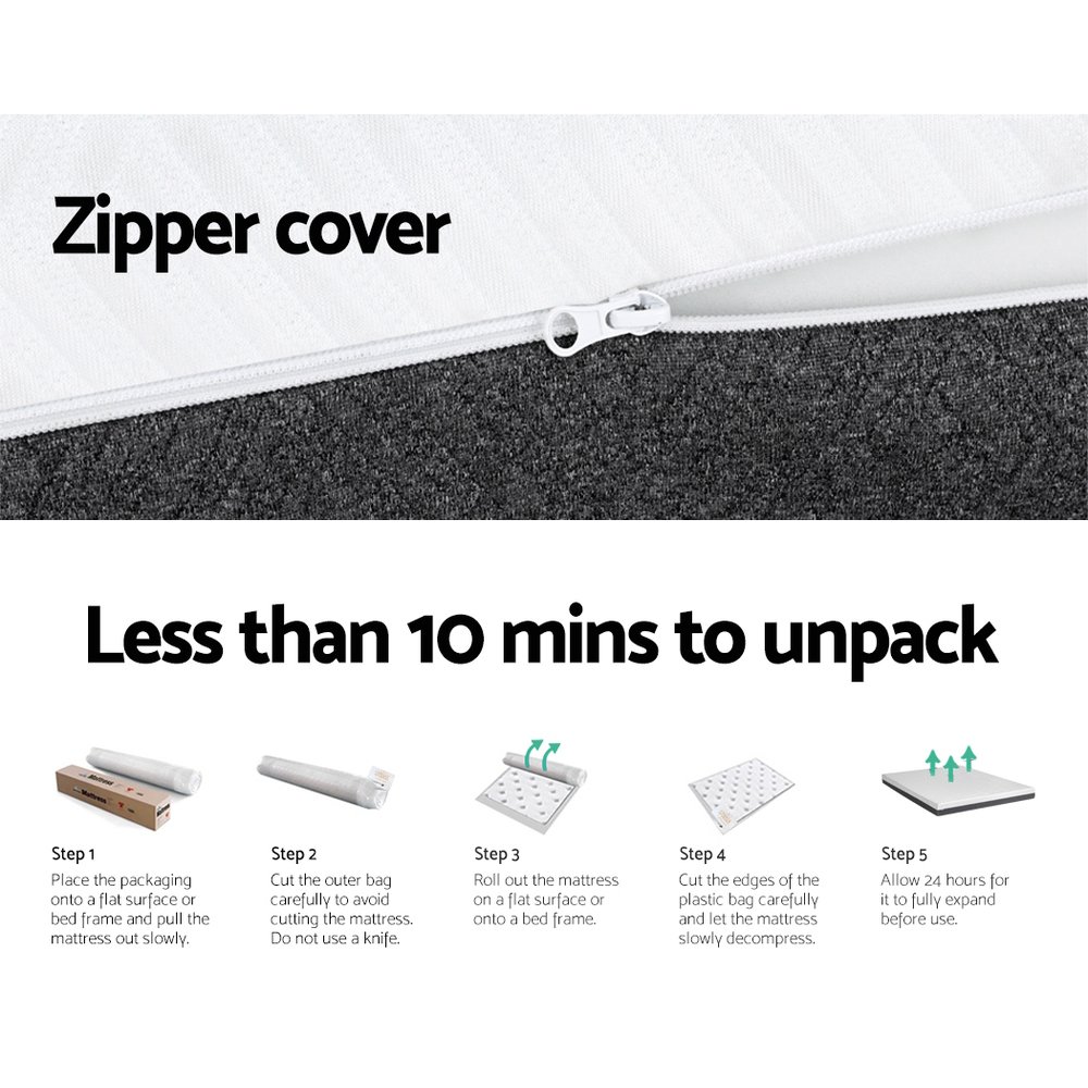 Sink into comfort with the luxuriously soft and sleep-inducing Giselle Bedding Memory Foam Mattress. The mattress features a multi-layer foam structure and dual-sided firmness to ensure the ultimate comfort. The top layer features CertiPUR-US certified cool gel memory foam to keep you at the ideal temperature during the night. The middle layer is constructed of egg-crate foam to provide comfort to back and side sleepers, as it provides additional support on the spine, hips and shoulders. The final layer consists of high-density foam to promote better sleep and pressure relief. The mattress overall has a soft-medium firmness that is ideal for a wide range of sleepers. The mattress is made from hypoallergenic, dust-mite-resistant jacquard knitted fabric and has a washable, removable zip cover for easy cleaning. With such amazing support, you’ll experience zero partner disturbance throughout the night, empowering you to get a great night’s sleep every night. Your mattress arrives perfectly vacuum-packed and ready for you to remove and expand. What are you waiting for? Available in Single, Double, Queen and King sizes, you can sleep happy on your brand-new Giselle Bedding Memory Foam Mattress.