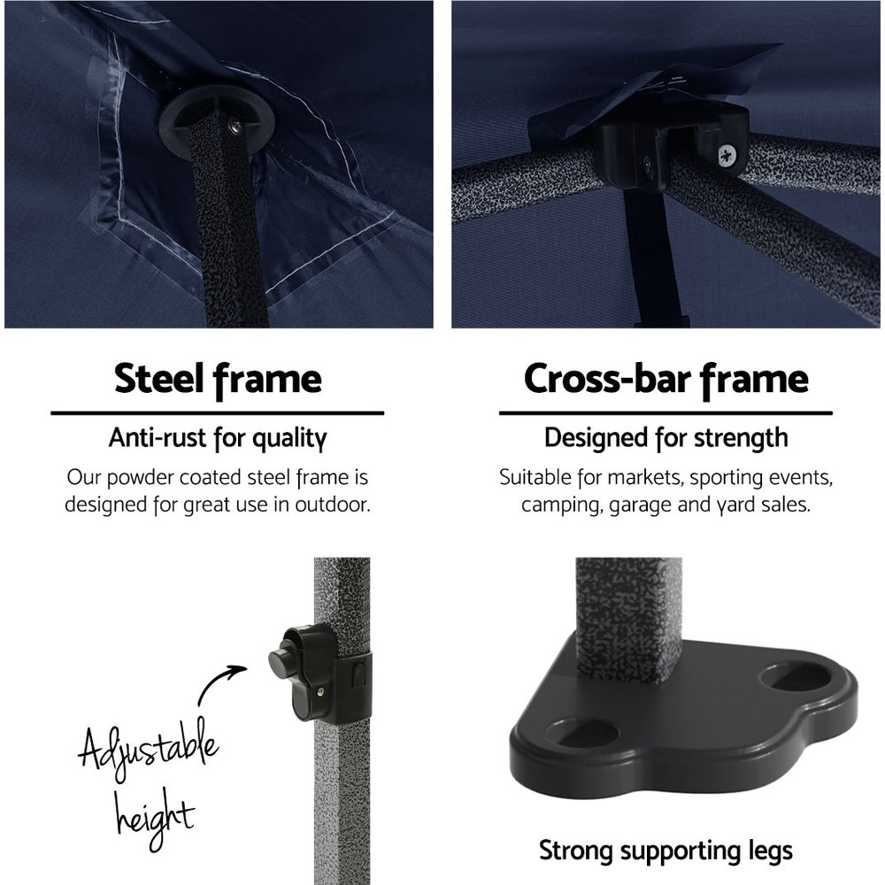 Instahut Gazebo Pop Up Marquee 3x3m Folding Tent Wedding Outdoor Camping Canopy Gazebos Shade Navy