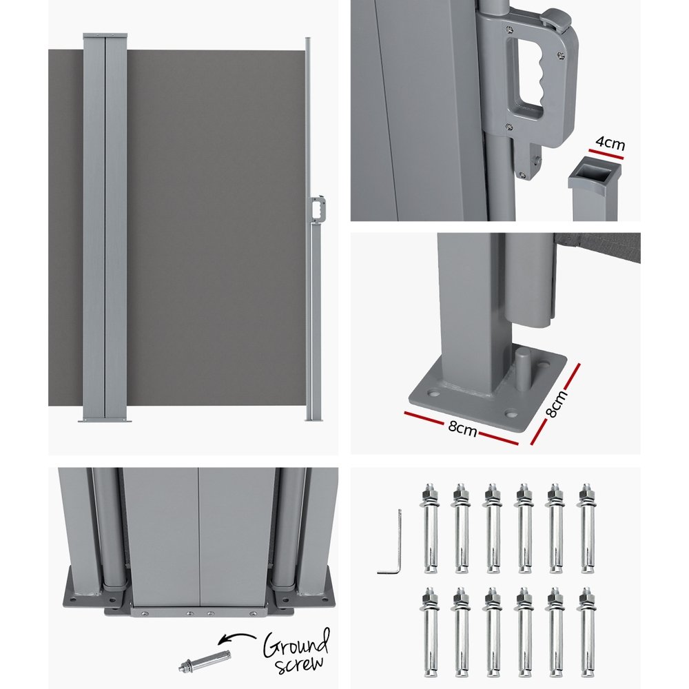 Instahut Side Awning Sun Shade Outdoor Retractable Privacy Screen 1.8X6M Grey