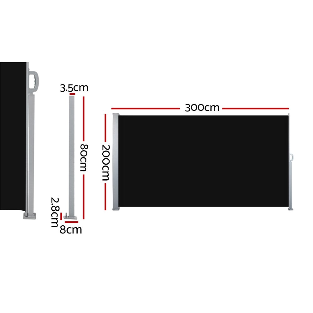 Instahut Side Awning Sun Shade Outdoor Retractable Privacy Screen 2X3M Black X2