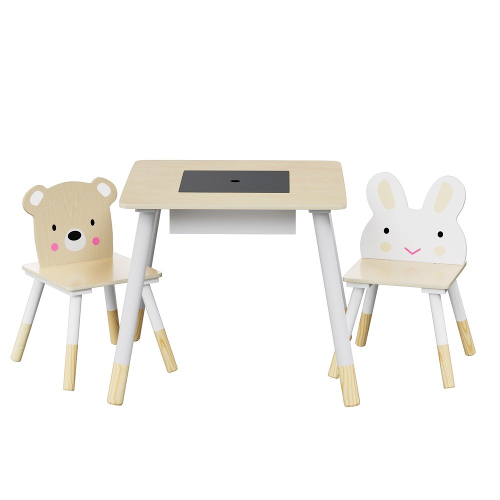 If your kids love getting creative, you’ll love the Keezi Kids Table and Chair Set. With its sturdy MDF and pinewood construction, the table is built for heavy-duty, long-lasting use. The cute animal design will entertain and delight your children, while the central chalkboard design will keep their little hands busy throughout the day. It has rounded edges and corners for safety – no bumps, scrapes or splinters. Hidden storage compartments allow you to keep the play area tidy. Suitable for 3 years and over, your kids will love the Keezi Kids Table and Chair Set.