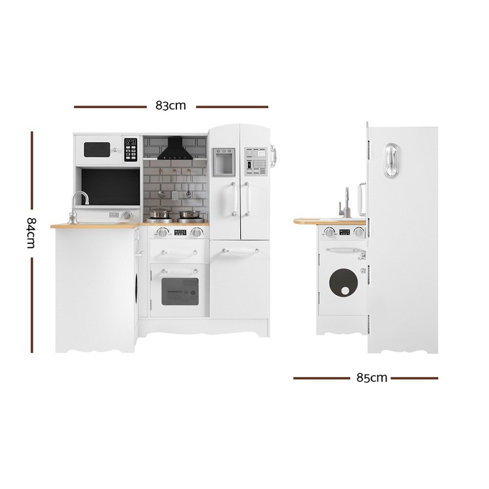 Keezi Kids Kitchen Play Set Wooden Pretend Toys Cooking Children Fridge White