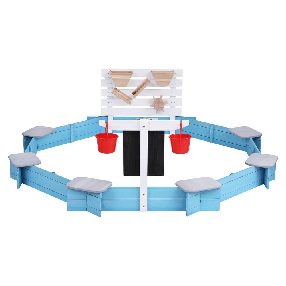 Keezi Kids Sandpit Wooden Round Sand Pit Funnel Bench Seat Beach Toys 215cm