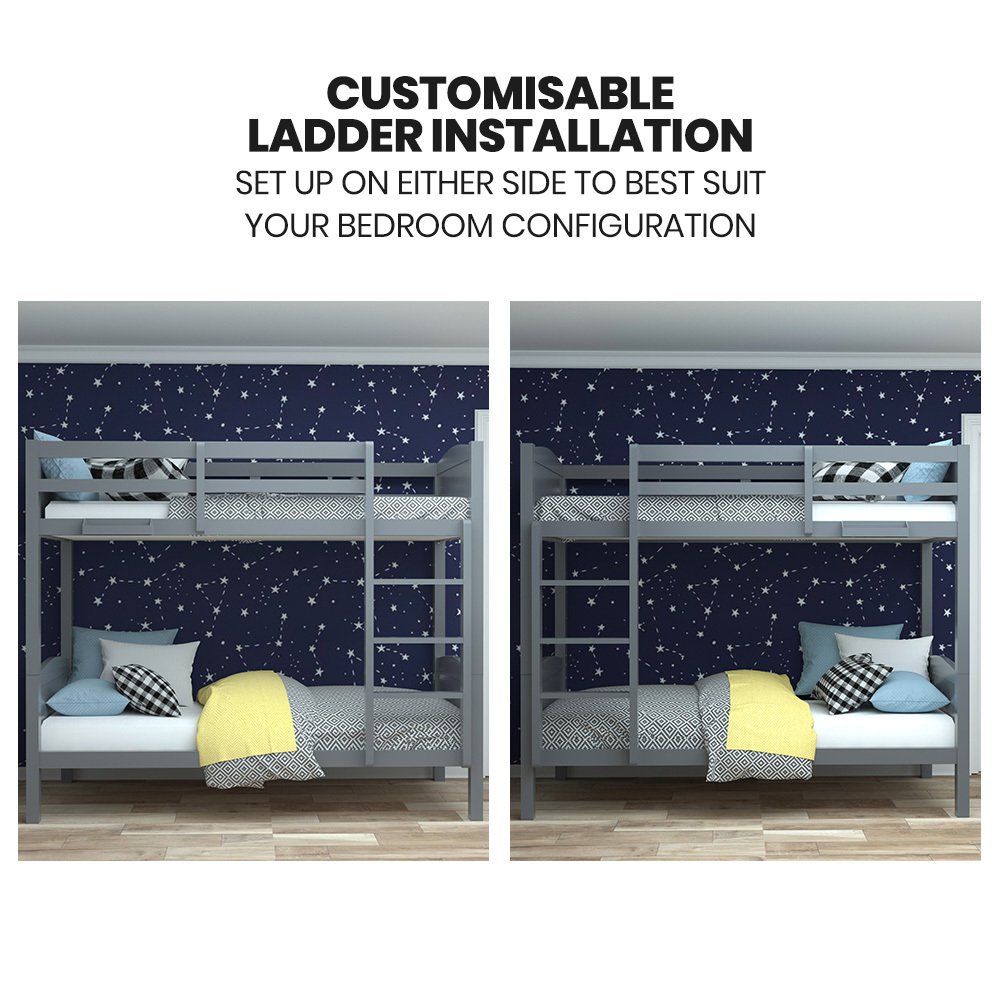 You can also take advantage of customisable ladder configuration, which allows you to install it on either the left or right side to best suit the room layout. Straightforward instructions are provided, along with quality fasteners and pre-drilled holes.The Kingston Slumber Modular Bunk bed is a practical and stylish addition to any room.