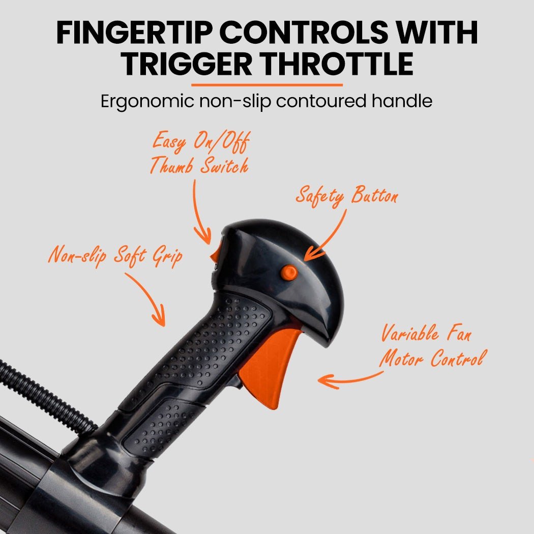 Thanks to the included interchangeable work heads, you can clear out everywhere from driveways to garden beds. A super flexible air outlet gives you optimal reach, and with a sensitive trigger, you can always apply just the right power to blow away even the biggest maintenance chores. So, stop toiling with that broom and rake – order your MTM at Mytopia today and employ the winds of change!