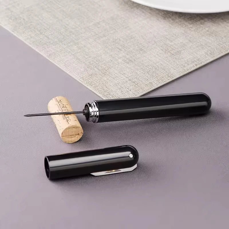 Effortlessly open your favorite wines with the NNEOBA Portable 2-in-1 Air Pressure Corkscrew. Includes a built-in foil cutter for added convenience.