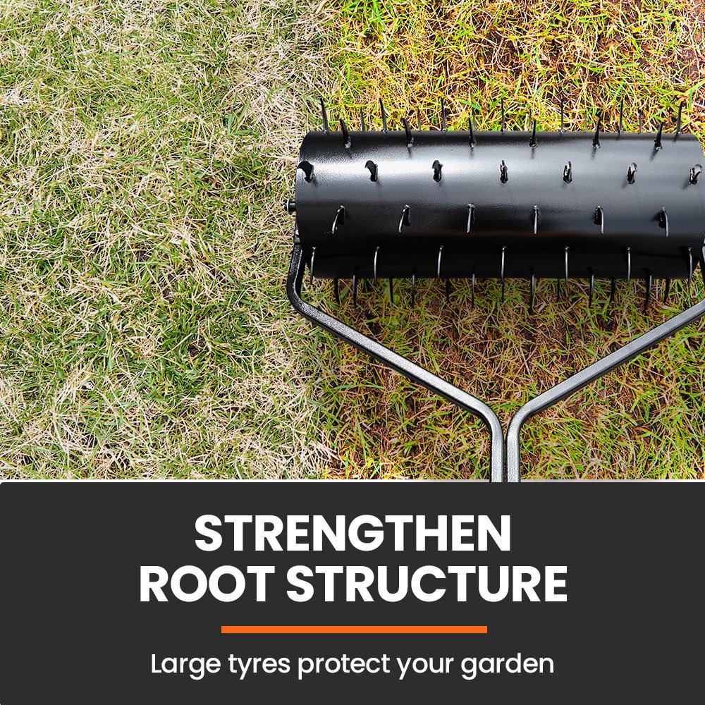 The PlantCraft TSA36 Tow Behind Roller Spike Aerator is an exceptional piece of garden equipment. This reliable time-saving machine is made from high-strength steel with a rust-resistant powder coat finish. The TSA36 lawn aerator roller has a spike depth of 2.5” which improves a lawn’s water and fertiliser absorption at the root layer. It has 78 steel spikes staggered among 12 rows. You can get the job done quickly too, as it’s rated to be towed at speeds of up to 8km/h.