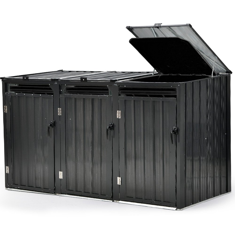 PLANTCRAFT Triple Steel Wheelie Garbage Bin Storage Shed, Enclosure with 3 Opening Doors