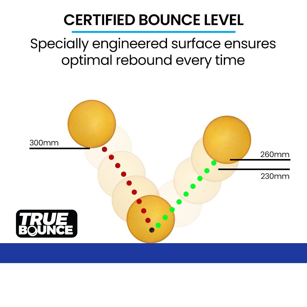 Our ping pong table is designed with meticulous attention to detail, making it the professional choice for both beginners and enthusiasts alike. With its TrueBounce specially engineered 15mm thick veneered technology surface treatment, you can expect a playing surface that guarantees consistent ball rebound, allowing you to showcase your skills with precision shots every time.