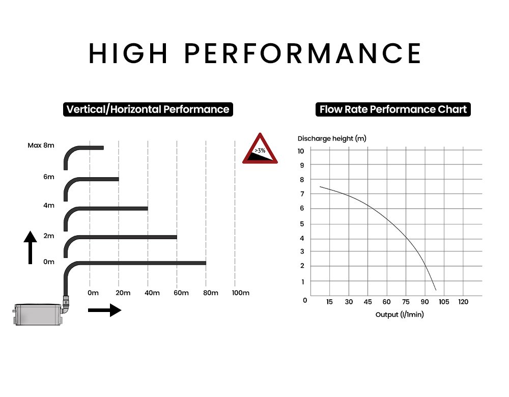 - Vertical Pumping (Max): 8m
