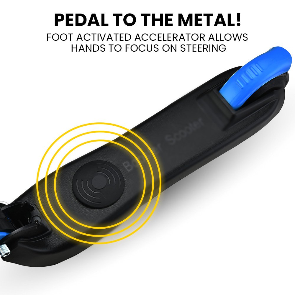 - Foot accelerator (keeps hands on the handlebars)