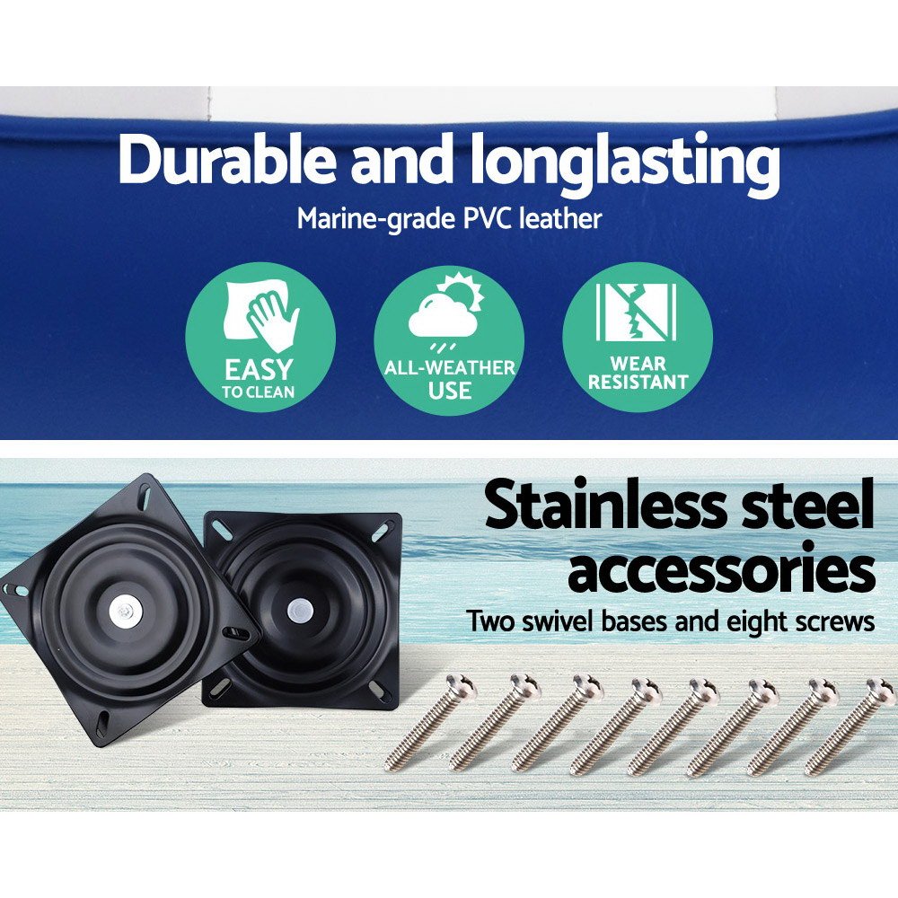 Seamanship 2X Folding Boat Seats Marine Seat Swivel High Back 12cm Padding Blue