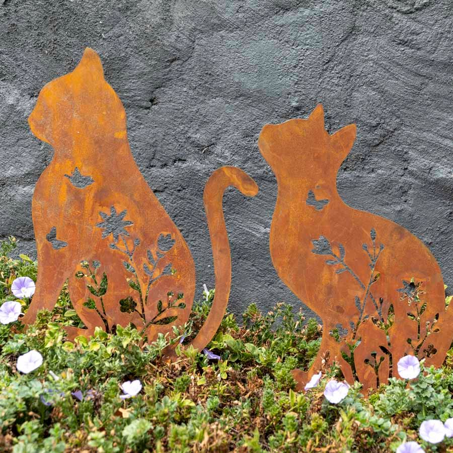 Set 2 Rust Sitting Cat Garden Stakes 37x46cm