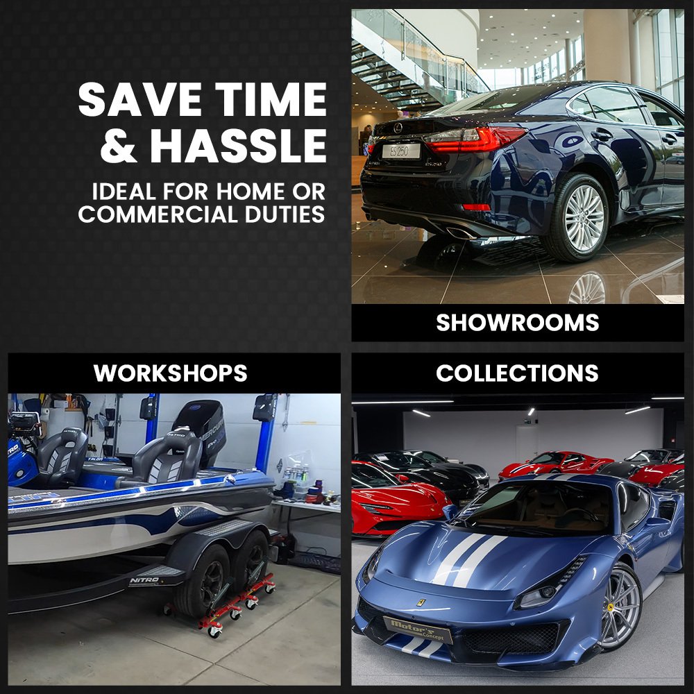 T-Rex is a brand synonymous with premium quality automotive lifting equipment, and therefore these wheel dollies are suitable for use in commercial premises such as mechanics and panel beaters workshops, car dealerships, as well as home garages.