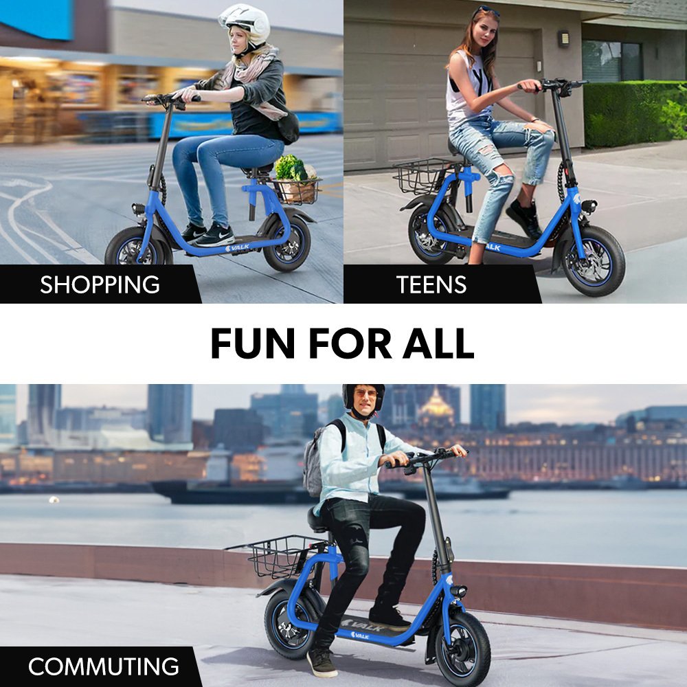 VALK Electric Scooter with Seat, Disc brakes, 12″ Tyres, AU Compliant, for Adults, Teens, Commuter, Blue