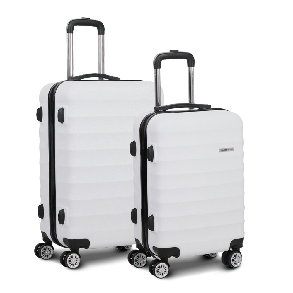 Wanderlite 2Set 20-28 Inch Luggage with TSA Lock Spinner Travel Suitcase Carry On Hard Shell Luggage Case White