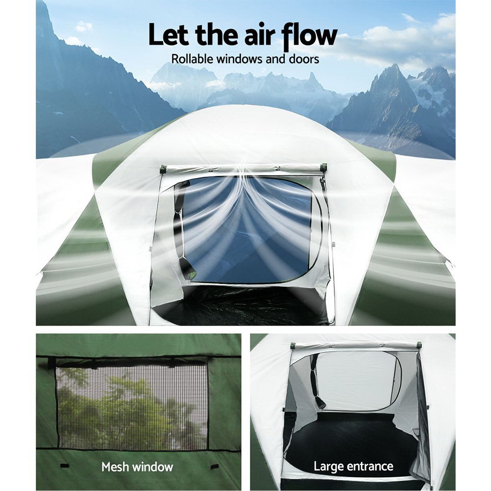 Weisshorn Family Camping Tent 12 Person Hiking Beach Tents (3 Rooms) Green
