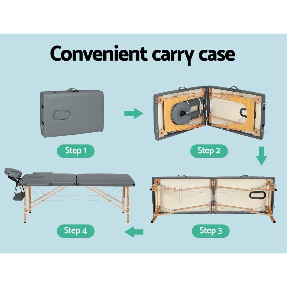 Zenses Massage Table 56cm Portable 2 Fold Wooden Beauty Bed Grey
